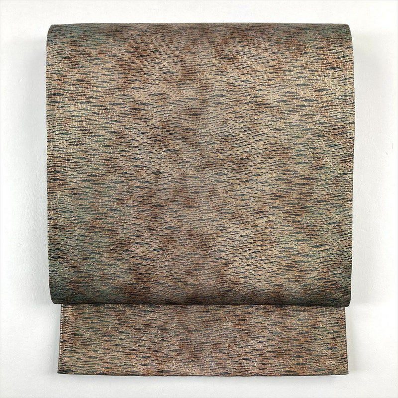 (中古)袋帯 茶 フォーマル 全通 切箔 横柄 波
