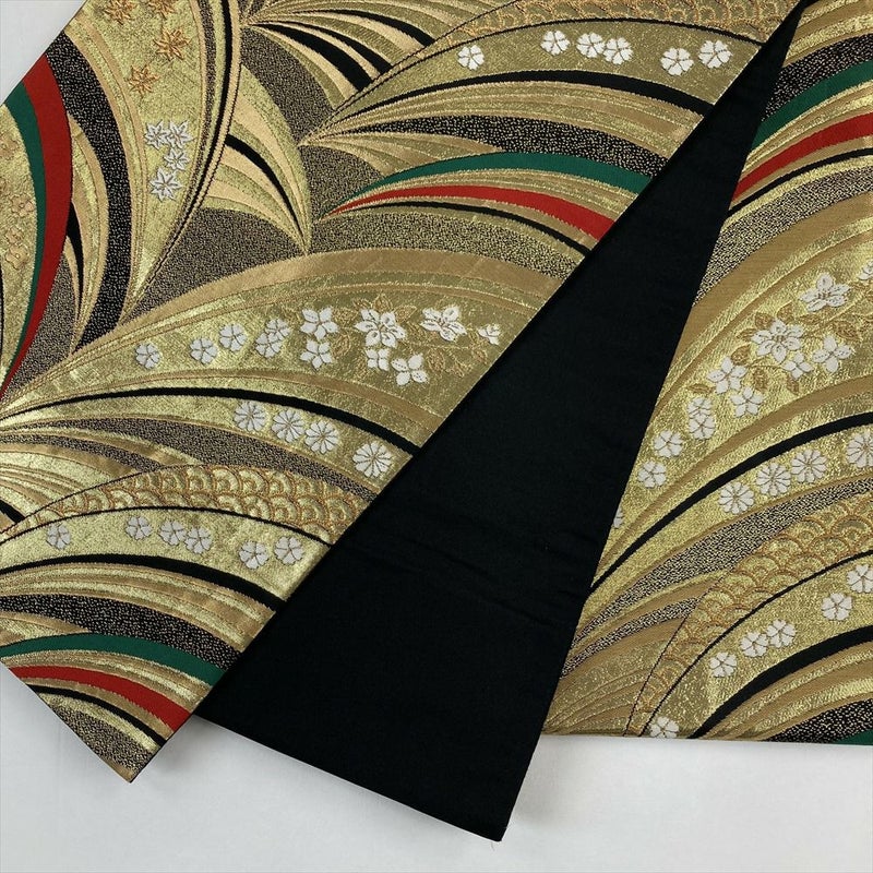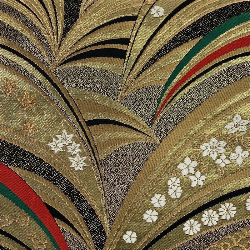 (中古)袋帯 黒 金 フォーマル 六通 切箔 金糸 色糸 吉祥文 四季花