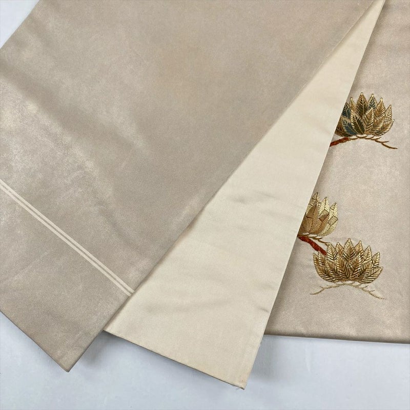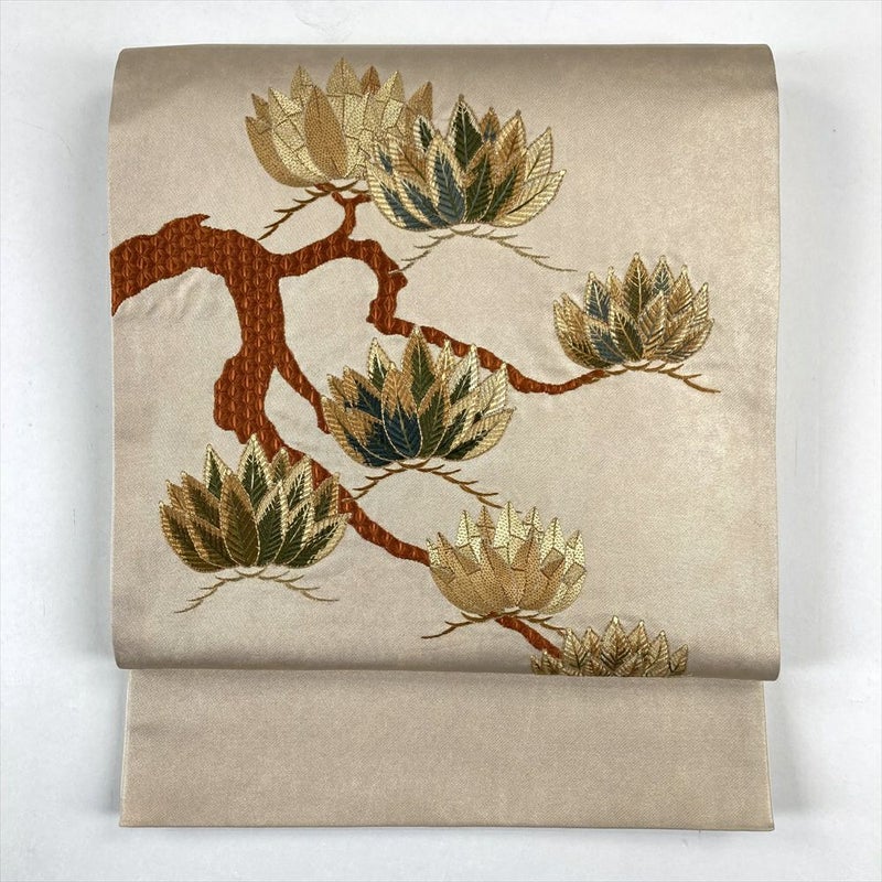 (中古)袋帯 ベージュ フォーマル セミフォーマル 六通 切箔 刺繍 松