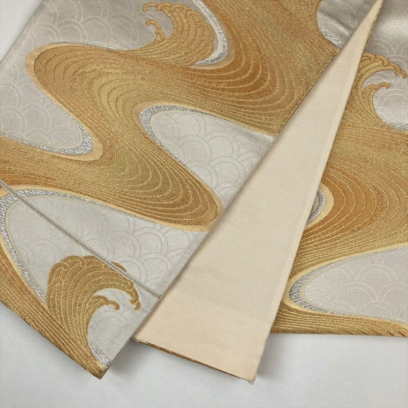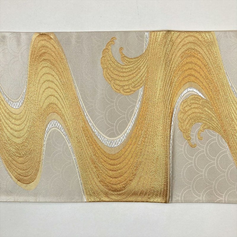 (中古)袋帯 金 銀 フォーマル セミフォーマル 六通 切箔 波 青海波