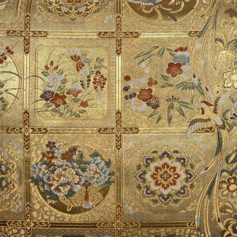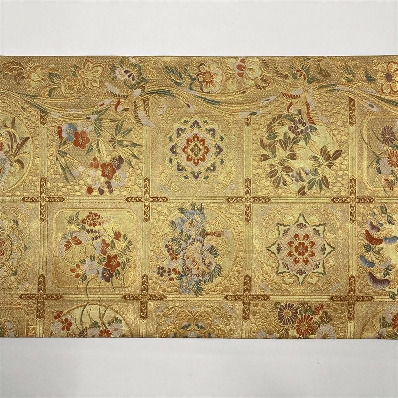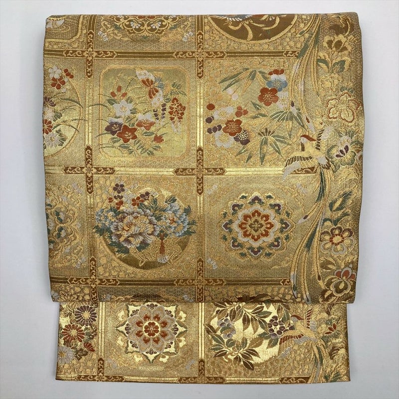 (中古)袋帯 金 フォーマル セミフォーマル 六通 格天井 鳳凰 四季花