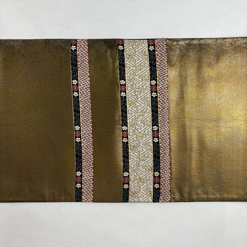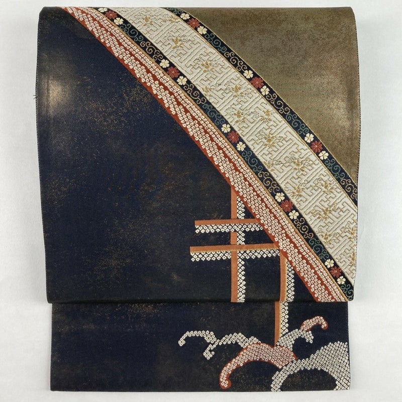 (中古)袋帯 黒 金 セミフォーマル 六通 織り 霞 橋 絹