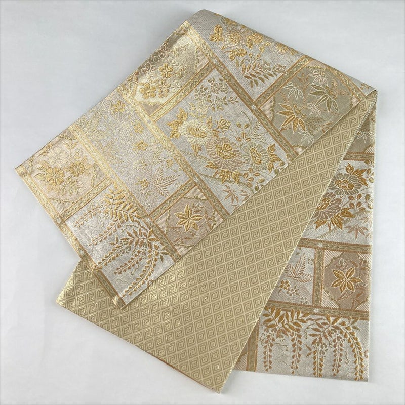 (中古)袋帯 金 セミフォーマル フォーマル 六通 織り 四季花文 絹
