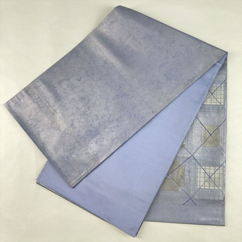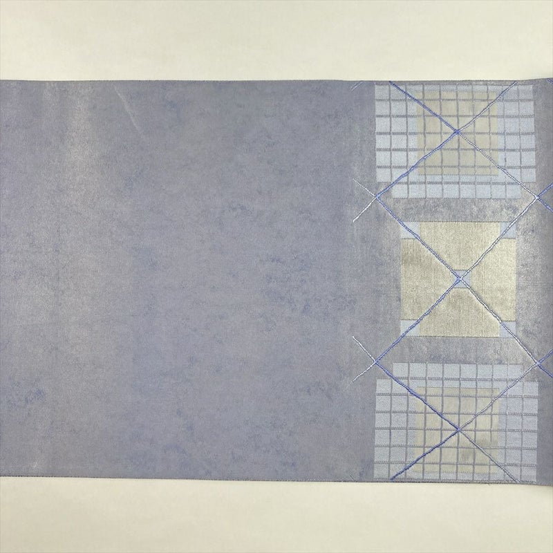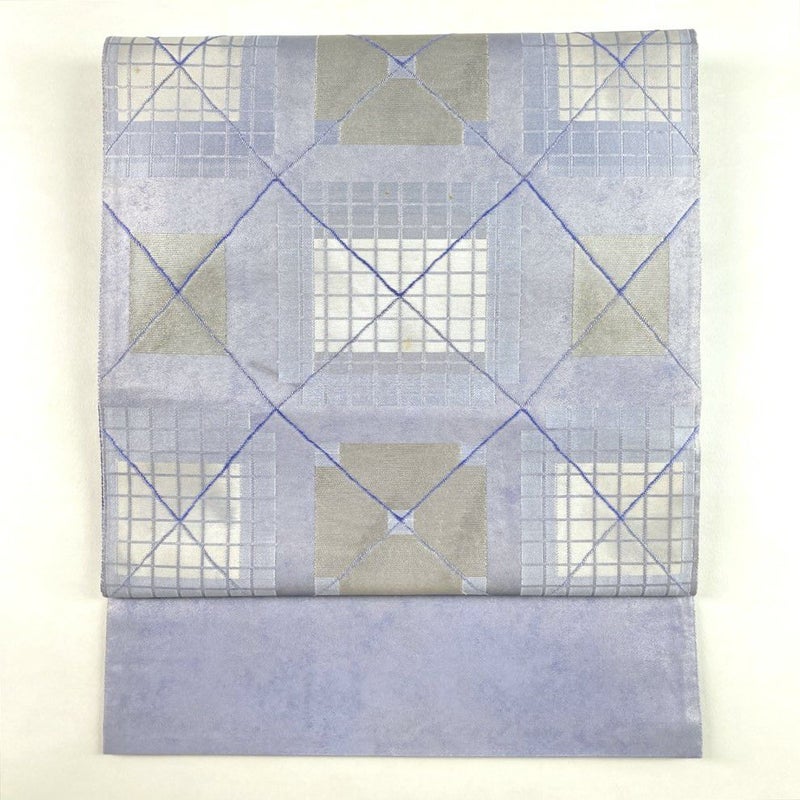 (中古)袋帯 薄青紫 カジュアル セミフォーマル 六通 織り 幾何学 絹