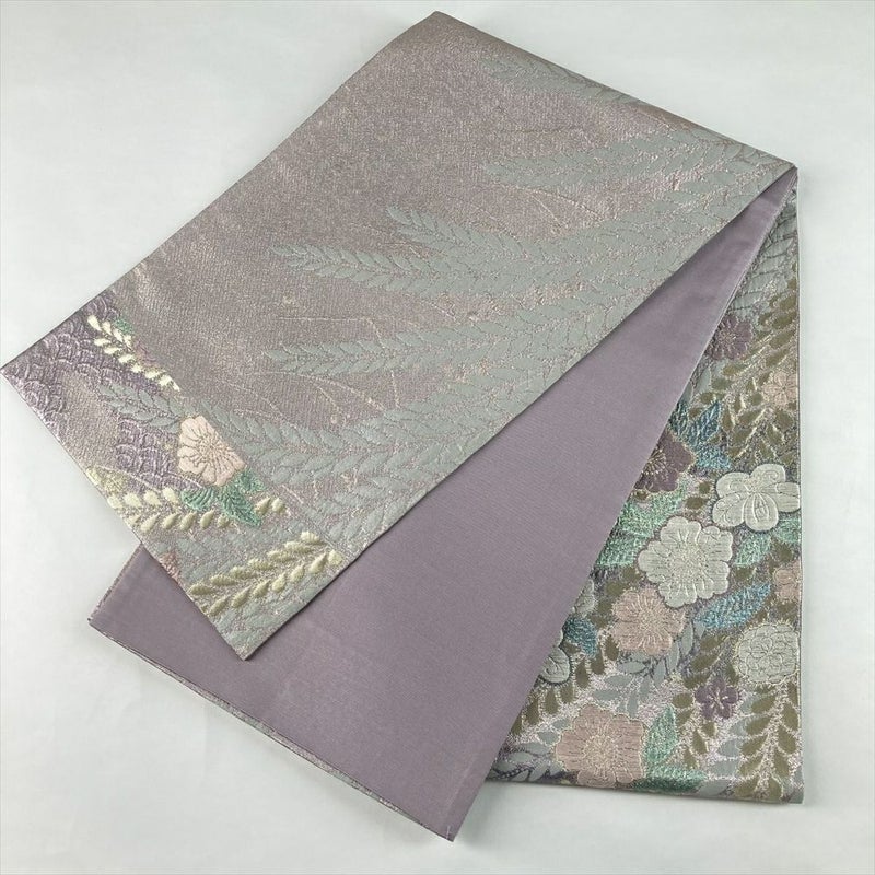 (中古)袋帯 薄紫 セミフォーマル フォーマル 六通 織り 辻が花 絹