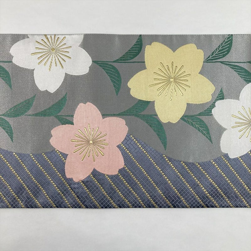 (中古)袋帯 銀 セミフォーマル フォーマル 六通 織り 枝垂れ桜 絹
