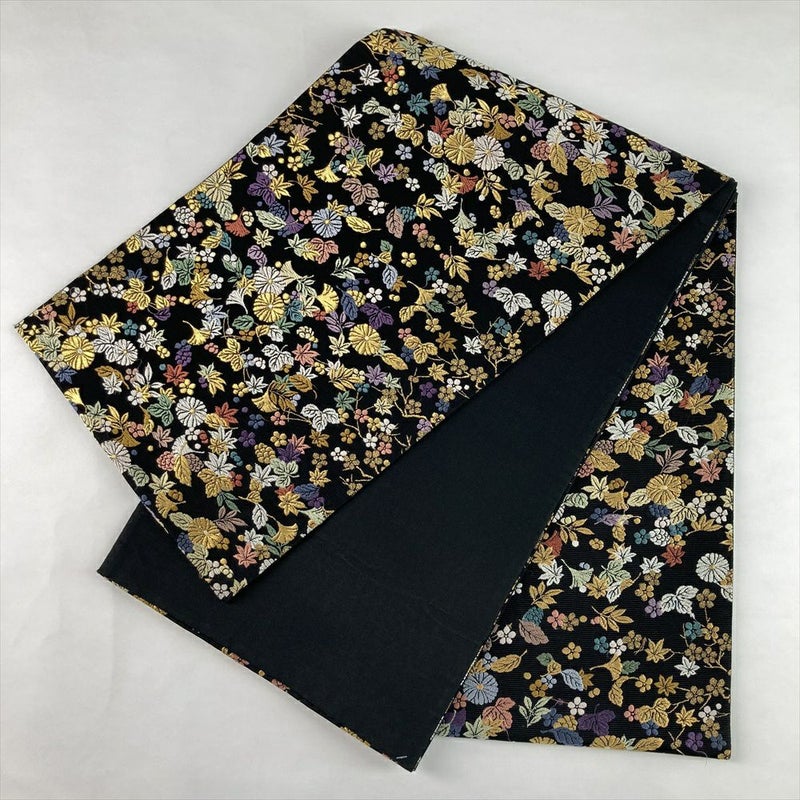 (中古)袋帯 黒 青 セミフォーマル フォーマル 六通 織り 吹き寄せ 絹