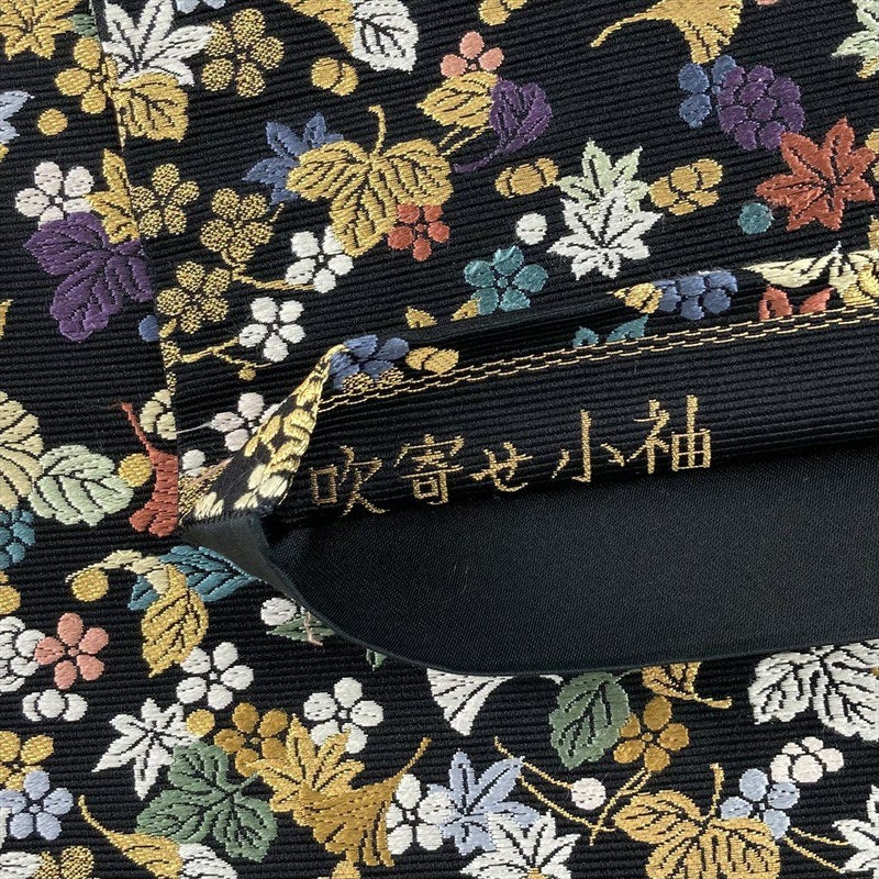 しっとりとした地風に、秋の風情を感じる吹き寄せ文様を織り出した、格式高い西陣織の袋帯です。