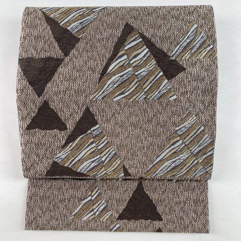 (中古)袋帯 ピンクグレー 紫 セミフォーマル 六通 織り 鱗文 絹