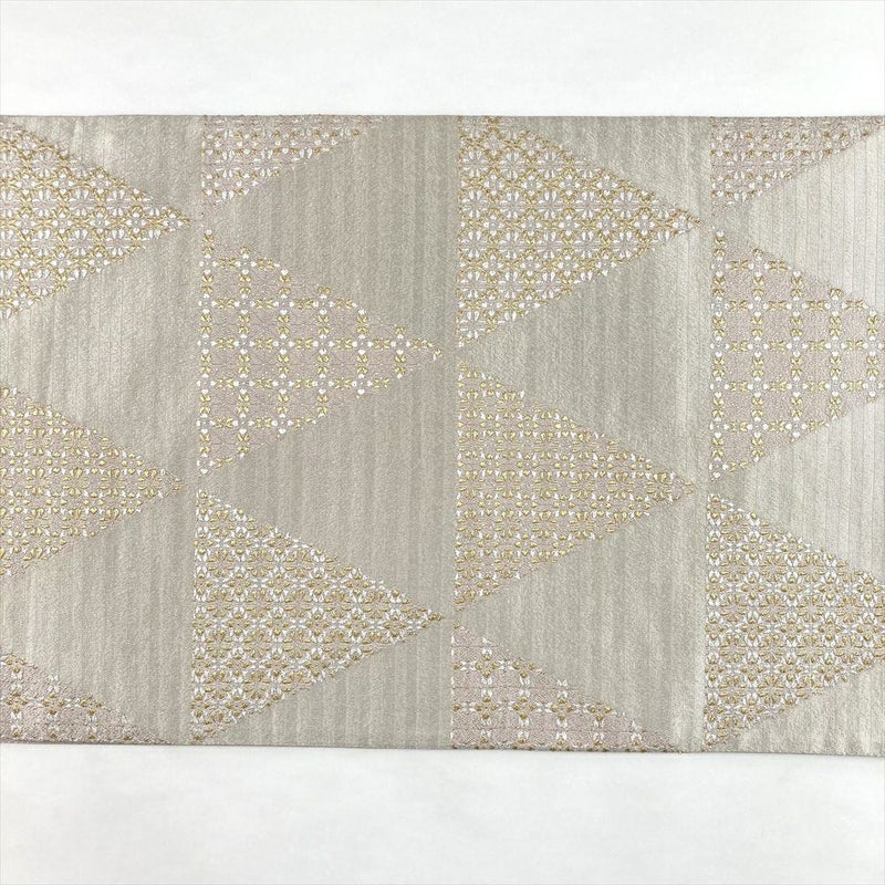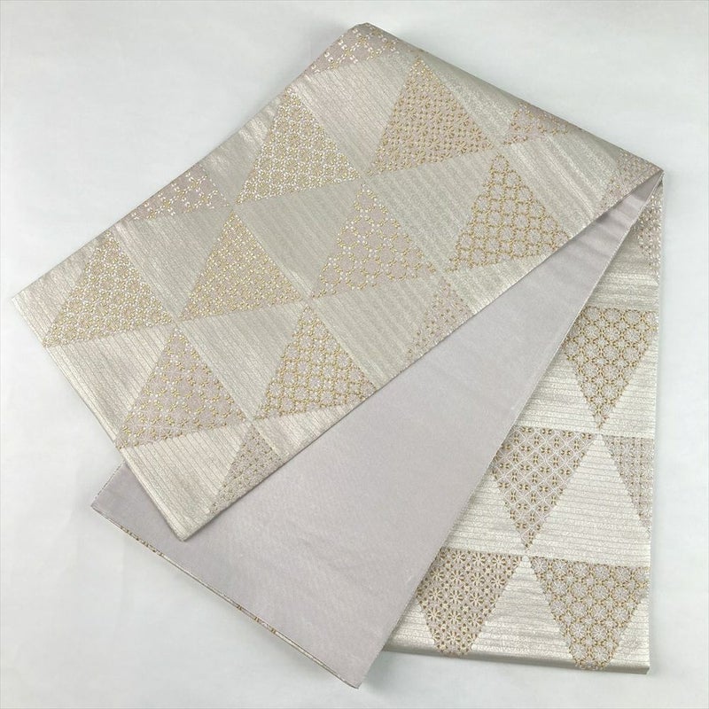 (中古)袋帯 銀 セミフォーマル 六通 銀糸 金糸 鱗文 絹