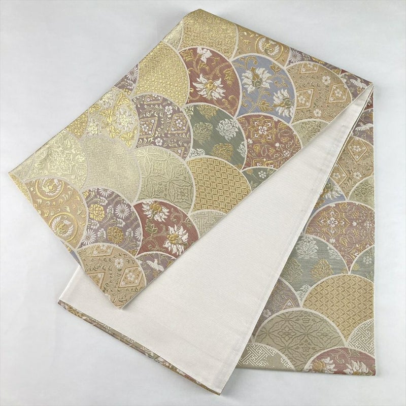 (中古)袋帯 金 セミフォーマル フォーマル 六通 金糸 色糸 青海波 名物裂 絹