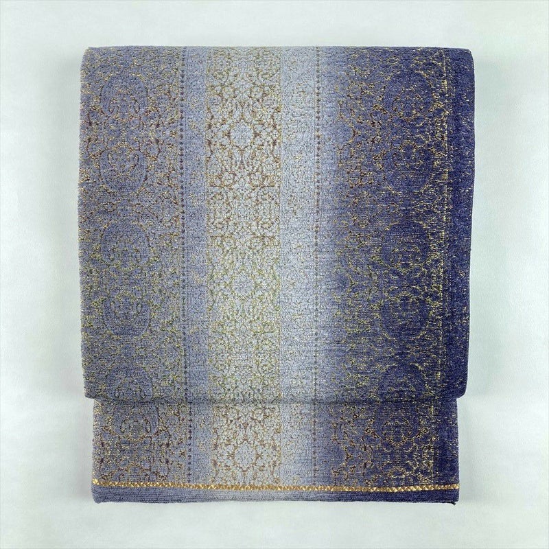 (中古)袋帯 青紫 カジュアル セミフォーマル 六通 モール織 オリエンタル文様 絹