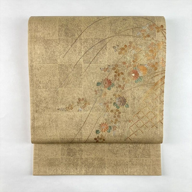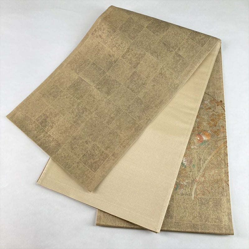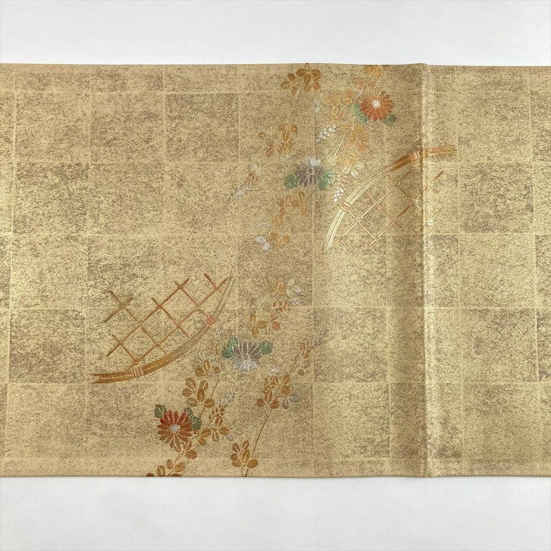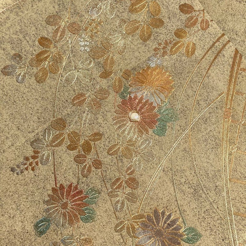 (中古)袋帯 金 セミフォーマル 六通 引き箔 金彩 秋の草花文 絹