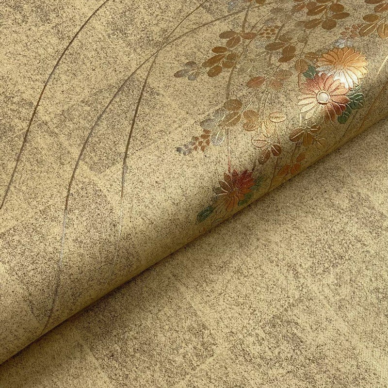 【色柄】金 セミフォーマル 秋の草花文 引き箔 金彩 六通