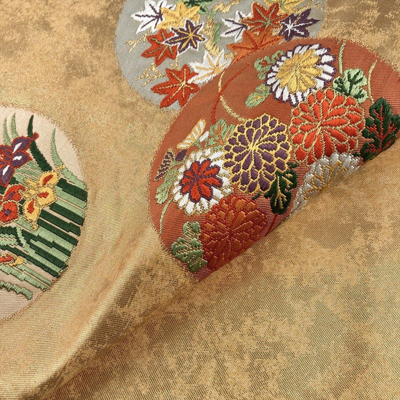 【色柄】金 フォーマル 丸文に四季花 引き箔