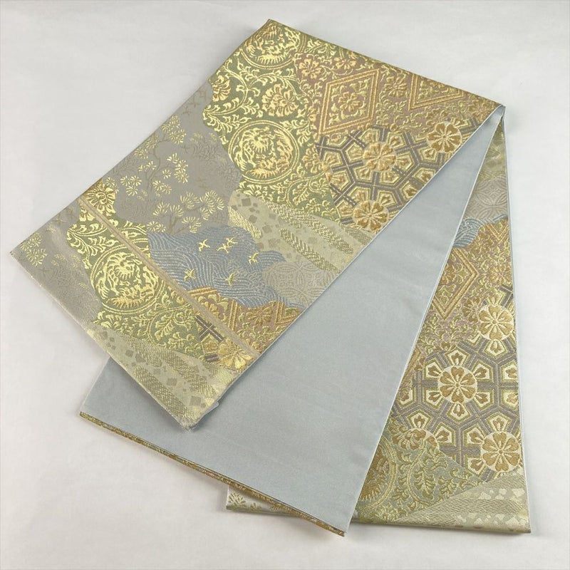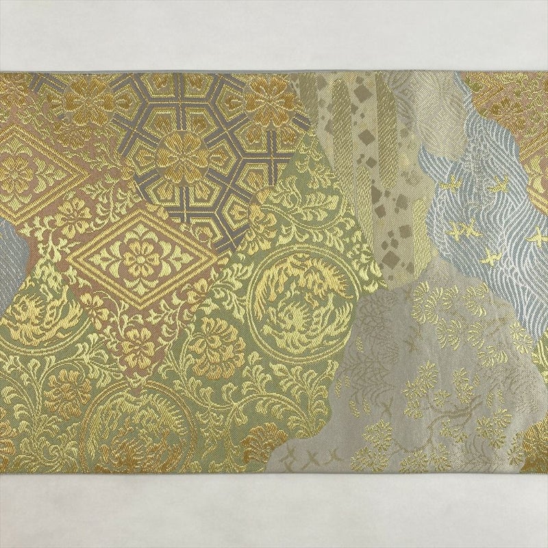 (中古)袋帯 金緑 フォーマル 六通 織り 川島織物 切り嵌め 道長取り 絹
