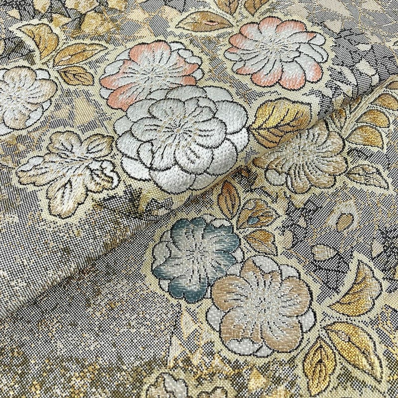 白茶に金銀糸が織りなす辻が花文様が、優美な輝きを放つ袋帯。