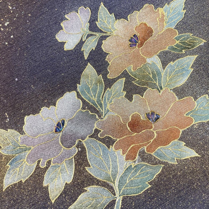 幽玄な色彩。金彩と螺鈿で描く牡丹の洒落袋帯