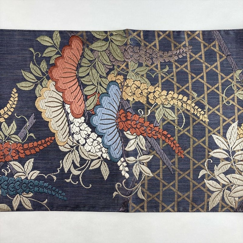 ファッションデザイナー花井幸子氏監修による、垣根に松と藤を描いた格調高い袋帯。
