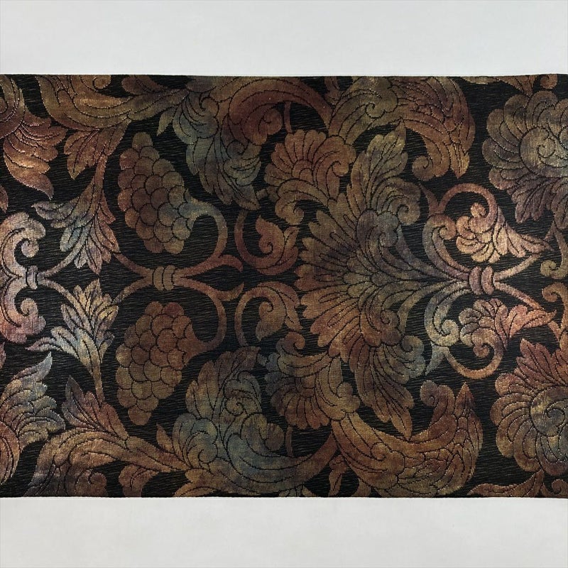 黒地に葡萄唐草を織り込んだ御寮織の袋帯。