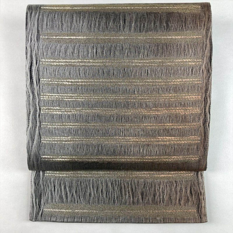 (中古)袋帯 茶 銀 カジュアル セミフォーマル 六通 織り 金糸 掬い織 横段 ぼかし 絹