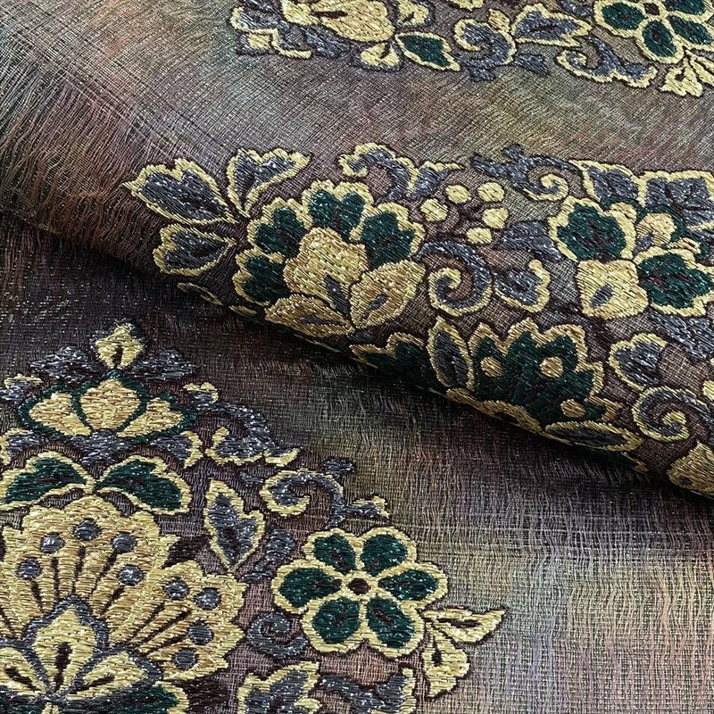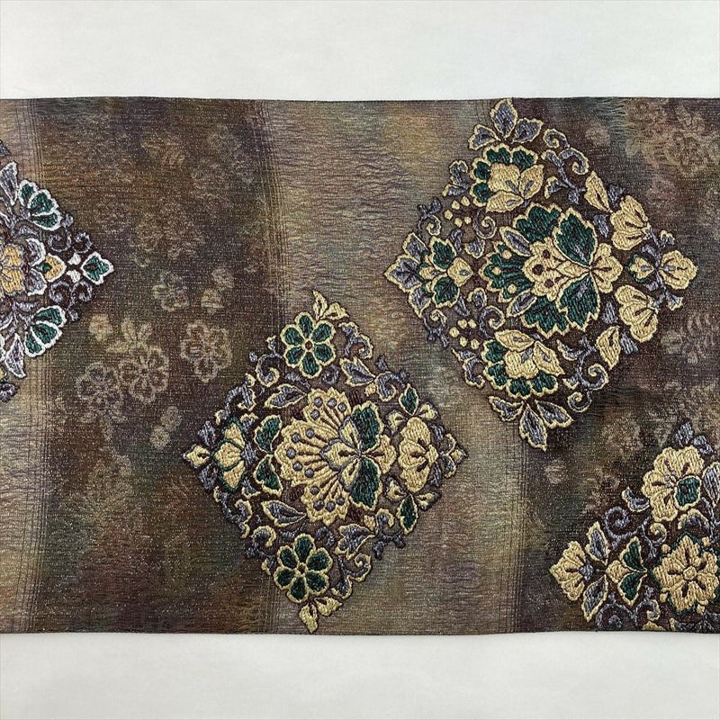 絹の上質な風合いに、織りで表現された菱華文が華やかさを添えます。