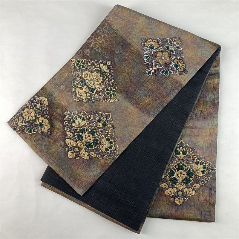 (中古)袋帯 玉虫 マルチカラー カジュアル セミフォーマル 六通 織り 菱華文 絹