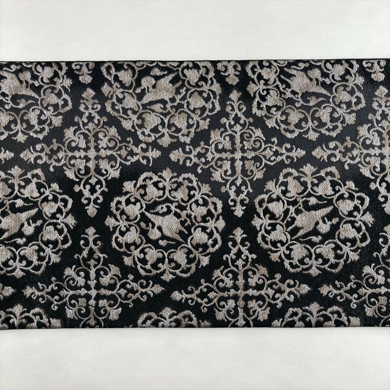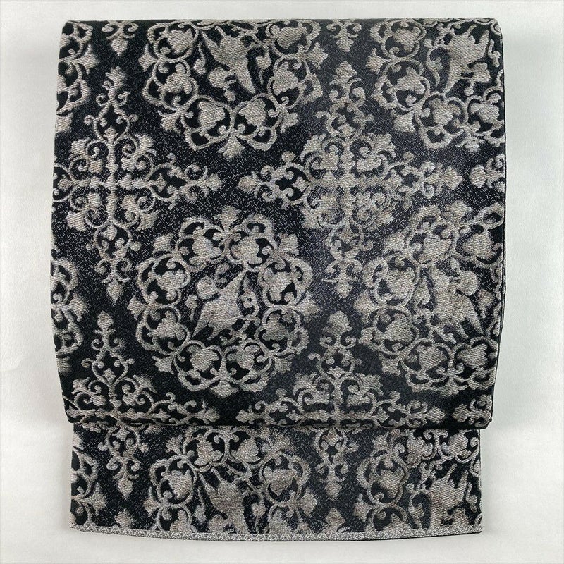 (中古)袋帯 黒 カジュアル セミフォーマル 全通 織り 銀糸 名物裂 唐草文調 絹