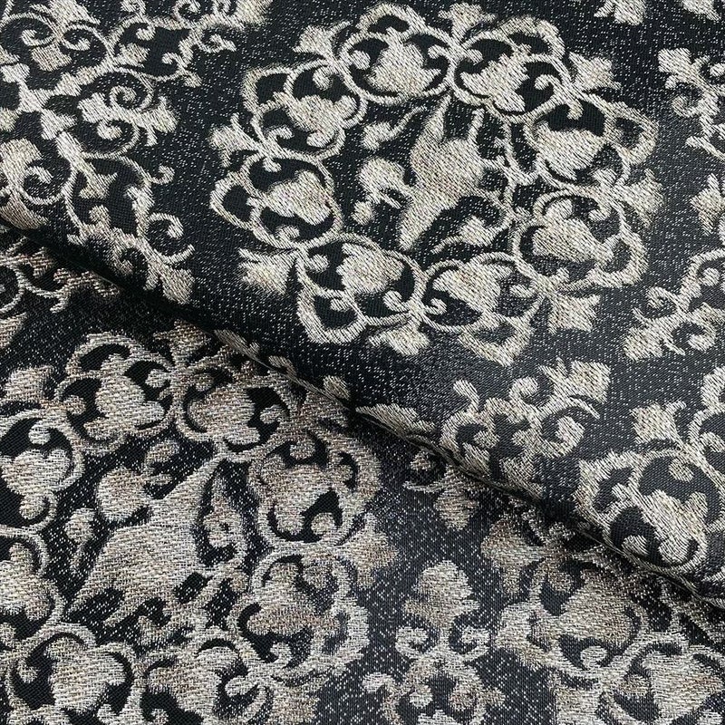 【色柄】黒 カジュアル セミフォーマル 名物裂 唐草文調 織り 銀糸 全通