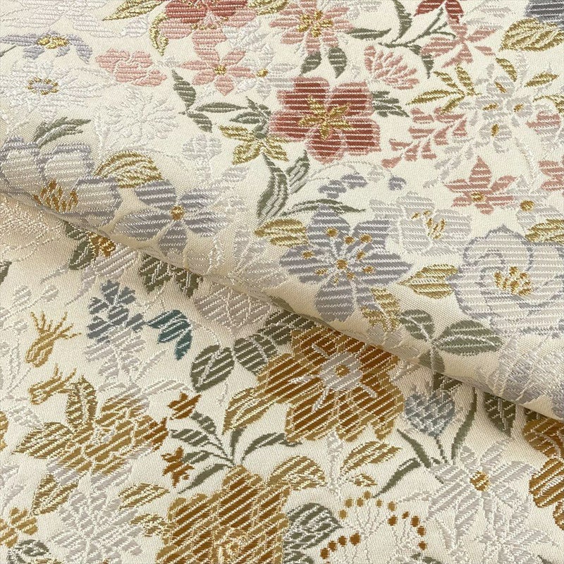 絹の柔らかな質感に、ボタニカルな織り柄がナチュラルな華やかさを添えます。