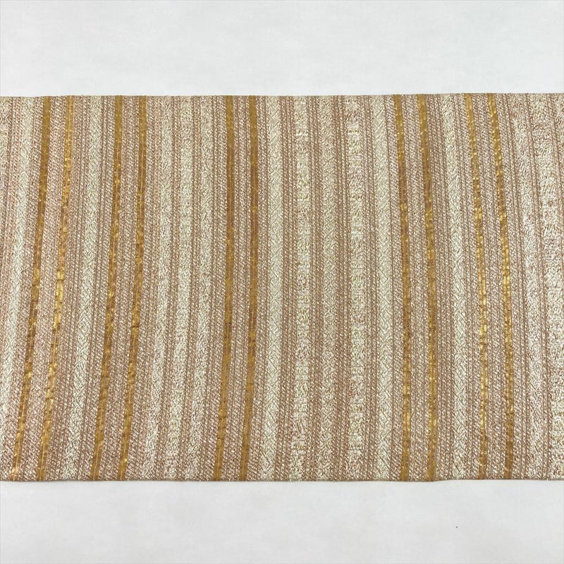 (中古)袋帯 金 茶 セミフォーマル 全通 織り 太箔 横段 絹