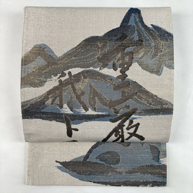 (中古)袋帯 銀 フォーマル 全通 織り 金糸 銀糸 枡屋高尾 文字 山 雲 絹