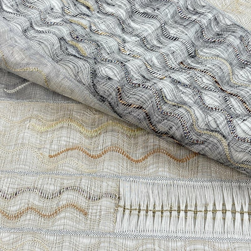 【色柄】グレー カジュアル セミフォーマル 波 抽象柄 掬い織り 六通