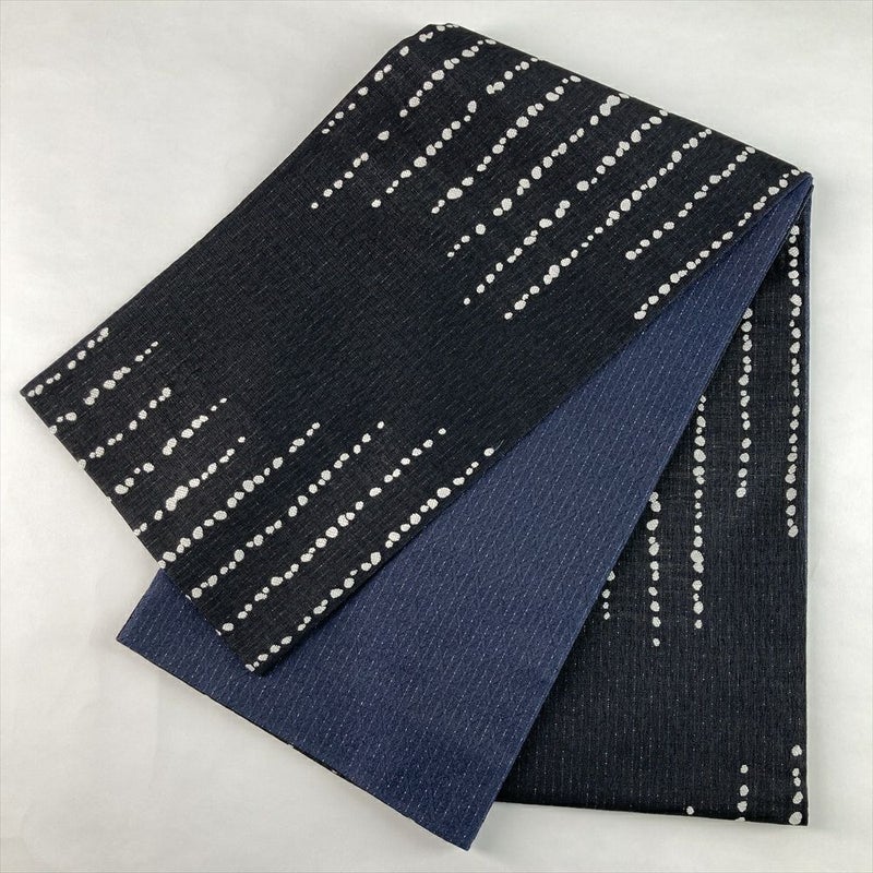 深い鉄紺の地に、滴のような文様が洒落たリズムを生み出す意匠。