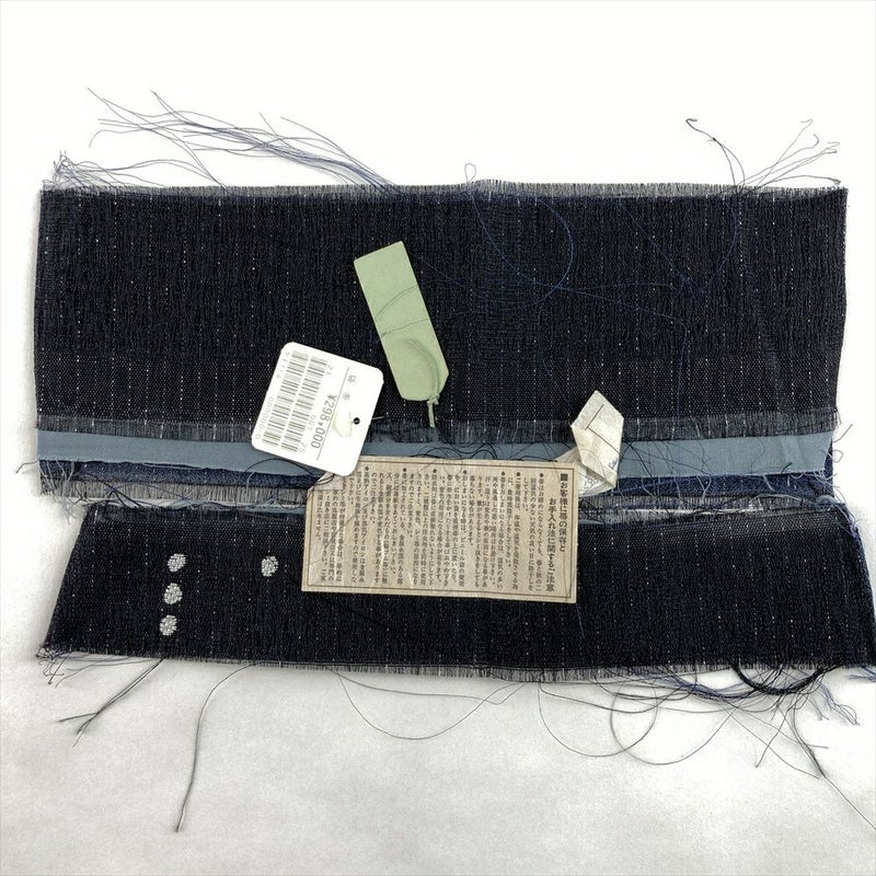 (中古)袋帯 濃紺 カジュアル セミフォーマル 全通 織り 銀糸 滴 水玉 絹