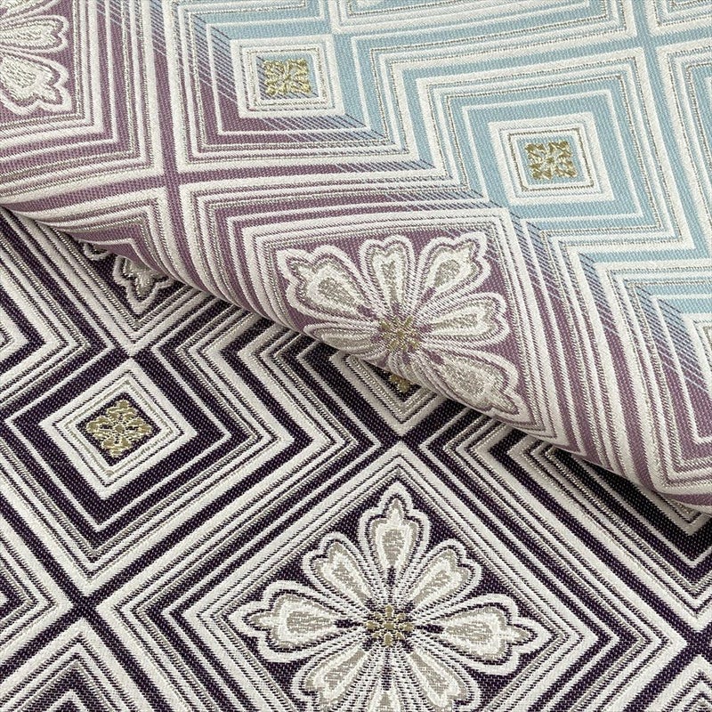 【色柄】薄紫 水色 セミフォーマル 菱取り 華文 織り 銀糸 六通