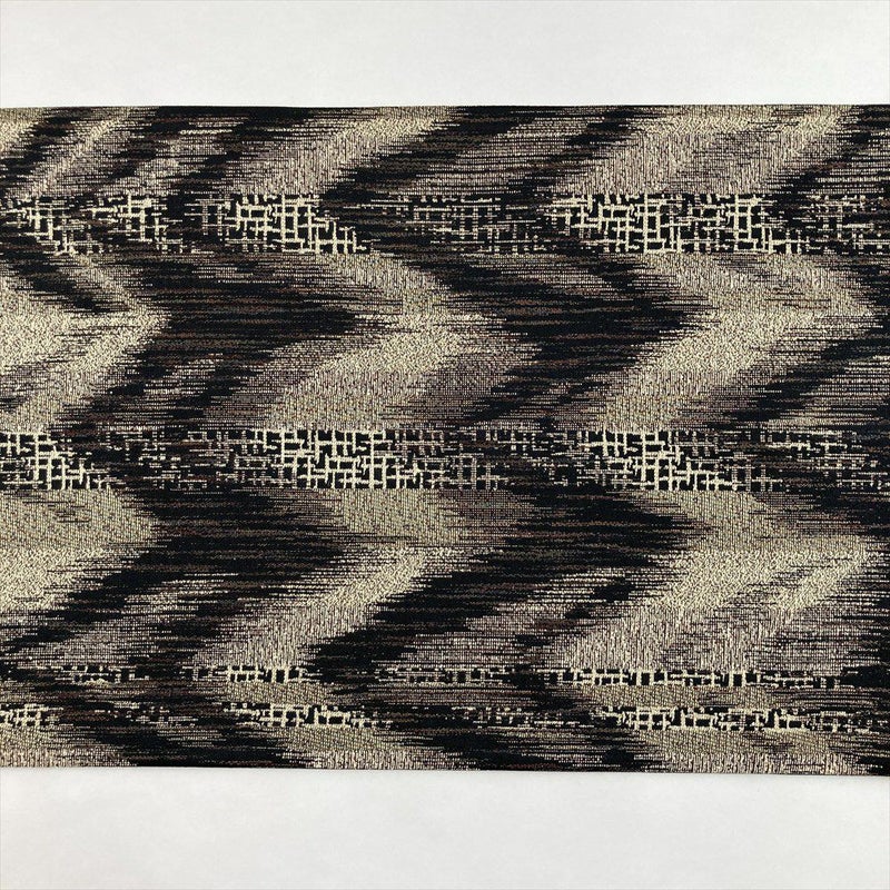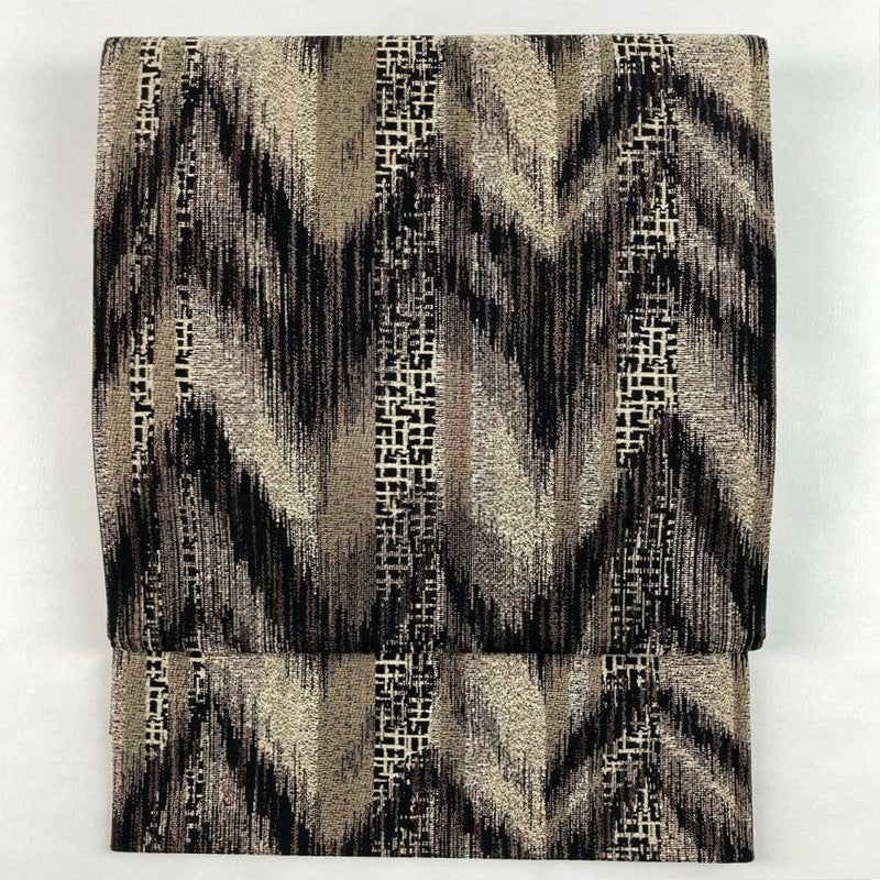 (中古)袋帯 茶 ベージュ カジュアル セミフォーマル 六通 織り 幾何学 絣調 絹