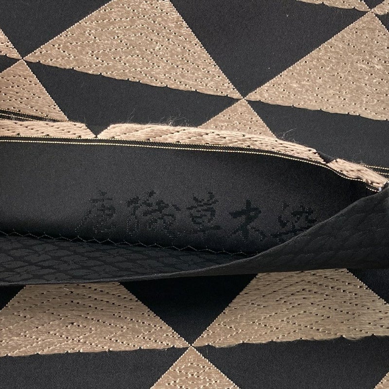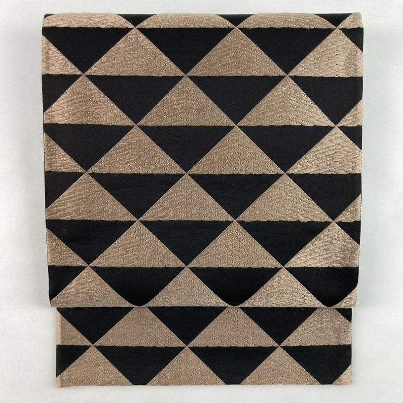 (中古)袋帯 黒 カジュアル セミフォーマル 六通 唐織り調 鱗文 絹
