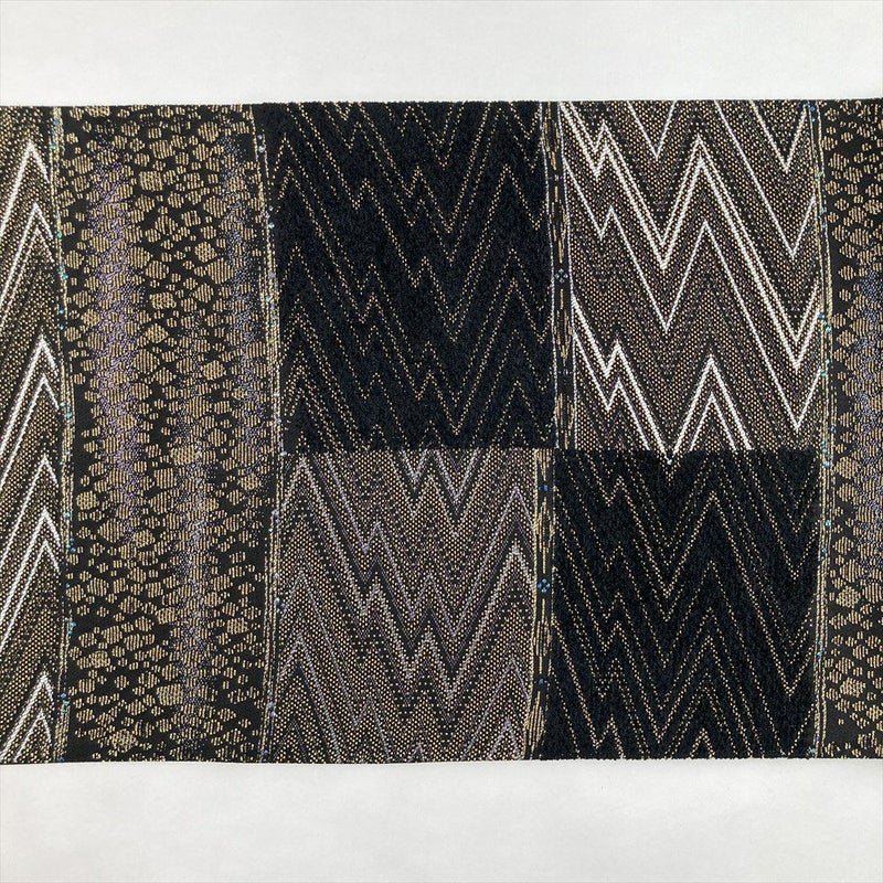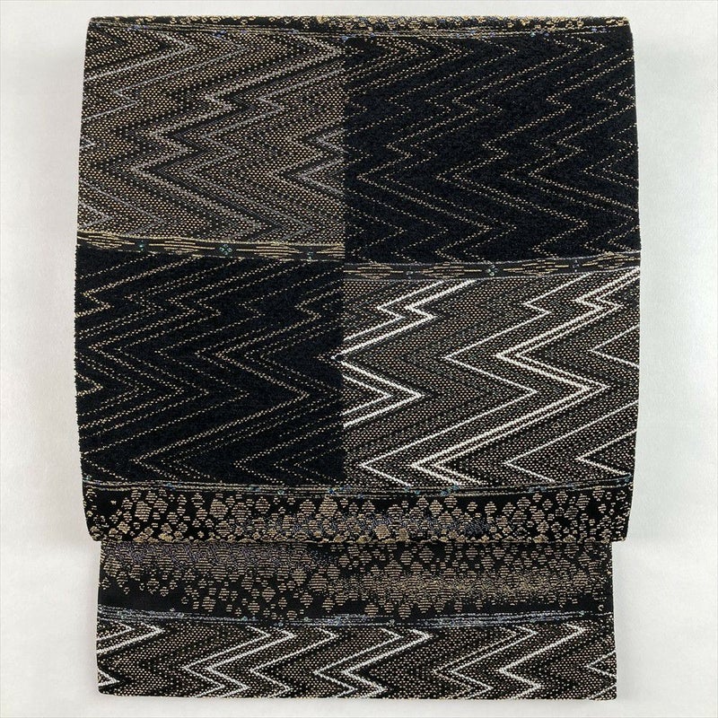 (中古)袋帯 黒 金 セミフォーマル 六通 輪奈織り 金糸 霰 雷 絹