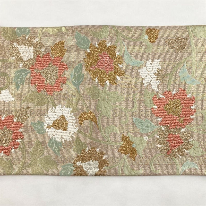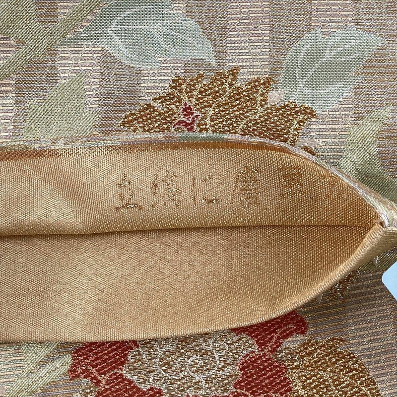 (中古)袋帯 金 ピンク フォーマル 六通 織り 太箔 立涌 牡丹唐草文 絹