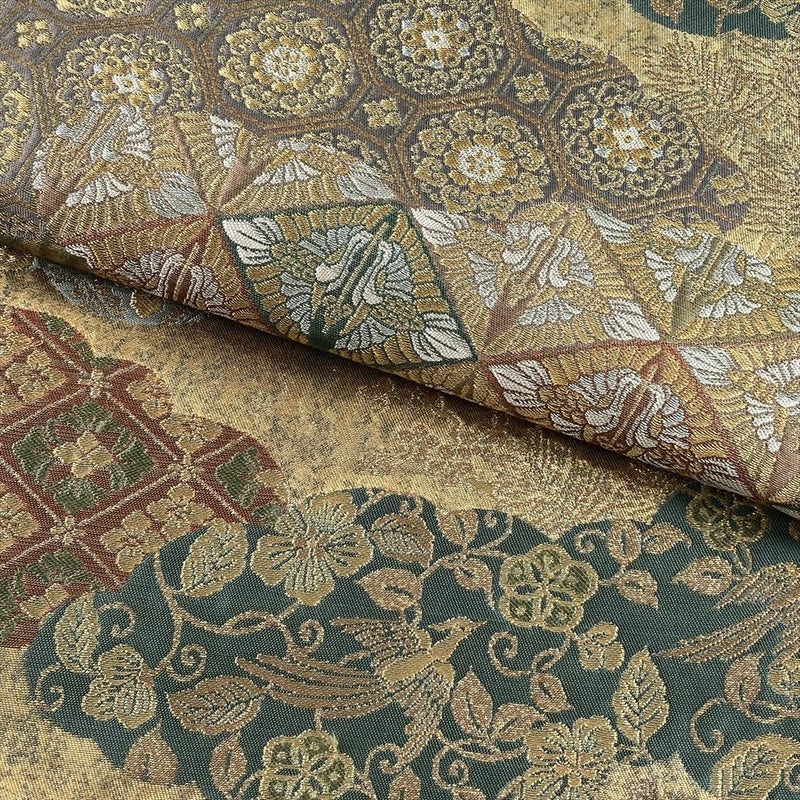 【色柄】金緑 フォーマル 雲取り 天平文 織り 引き箔 金糸 六通