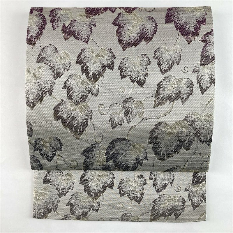 (中古)袋帯 銀 セミフォーマル 六通 織り 金糸 銀糸 蔦の葉 絹