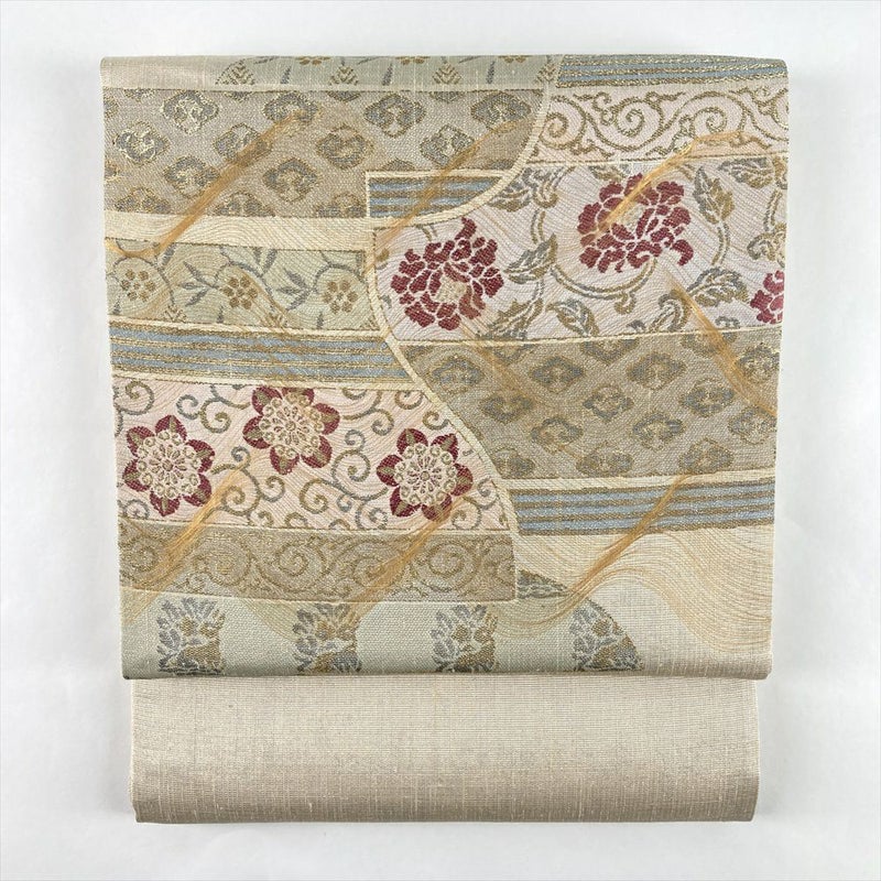 (中古)袋帯 白金 セミフォーマル 六通 未仕立て 織り 名物裂 絹
