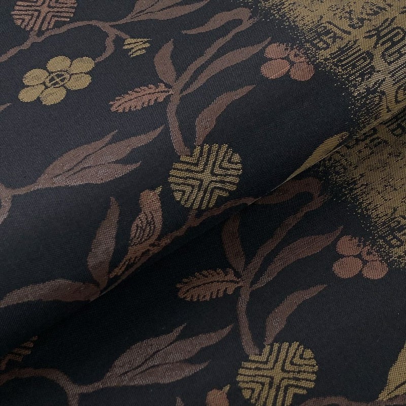【色柄】黒 セミフォーマル 笹蔓 鳥 文字 織り 六通