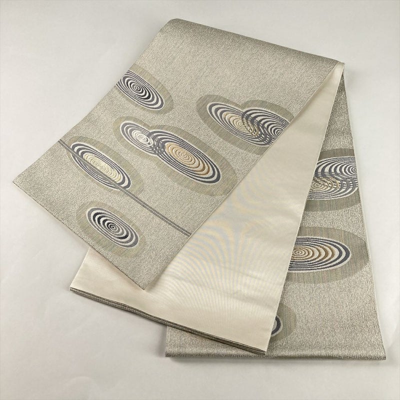 (中古)袋帯 銀 セミフォーマル 六通 織り 金糸 銀糸 波紋 絹