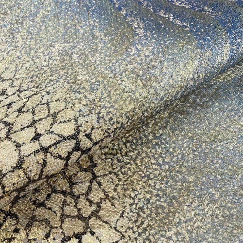 【色柄】青 金 フォーマル 干割れ 波 織り 金糸 全通