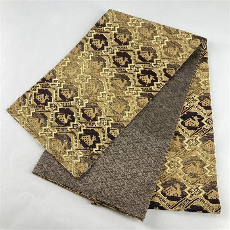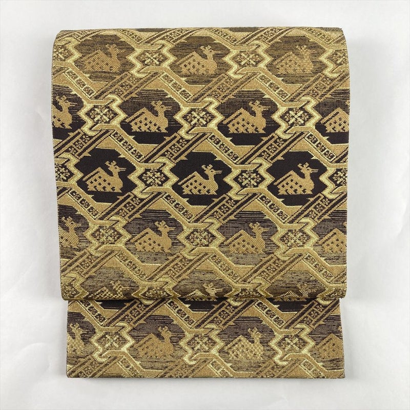 (中古)袋帯 金 セミフォーマル フォーマル 全通 輪奈織 有栖川文 絹