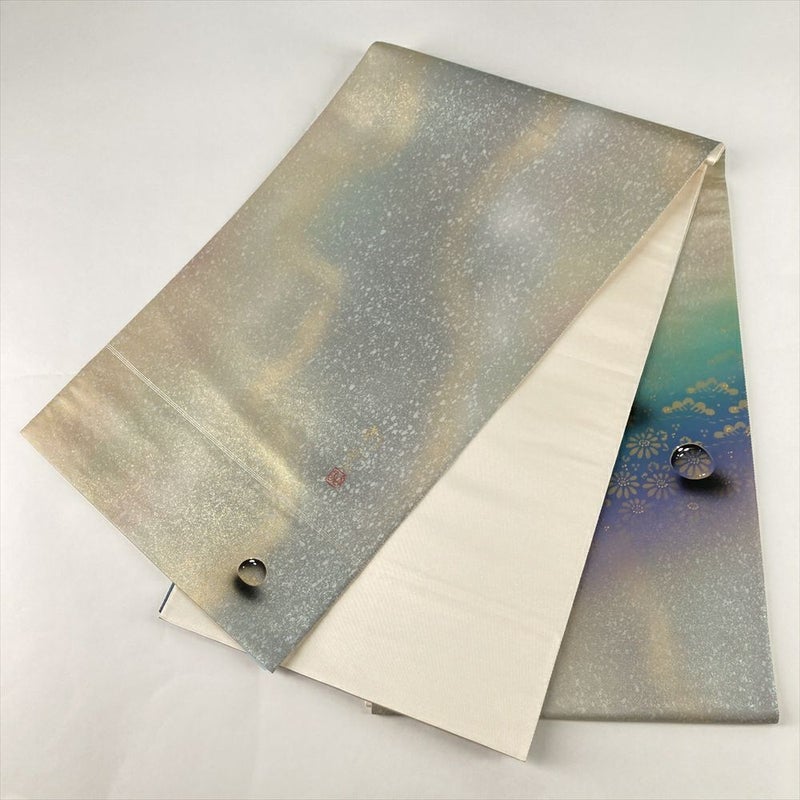 (中古)袋帯 青緑 セミフォーマル 六通 織り 引き箔 滴 絹
