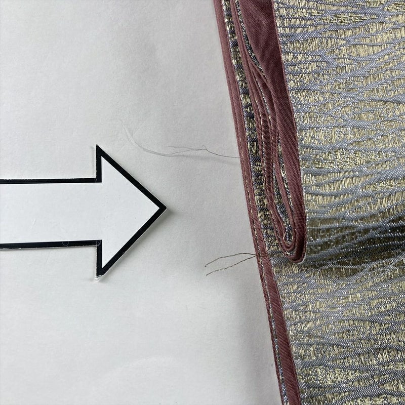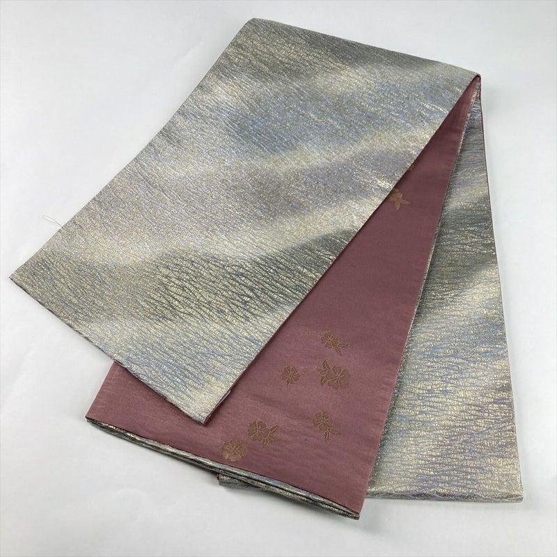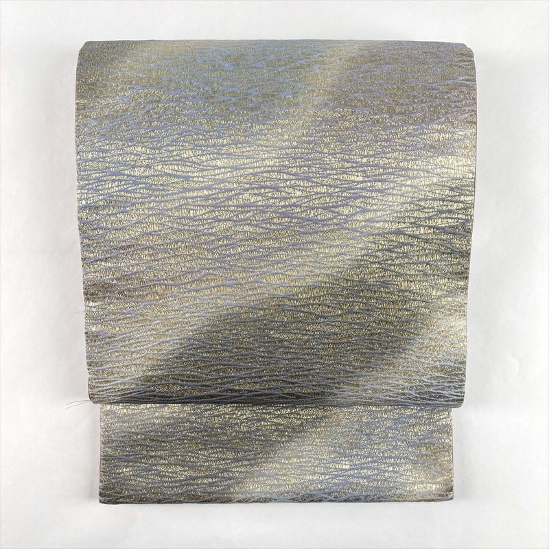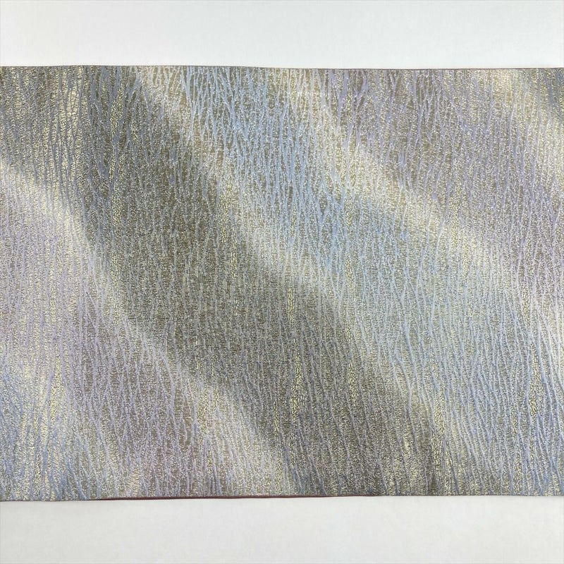 金・銀・薄紫の色彩が織りなす斜めぼかしが、洗練された印象を放つ袋帯です。