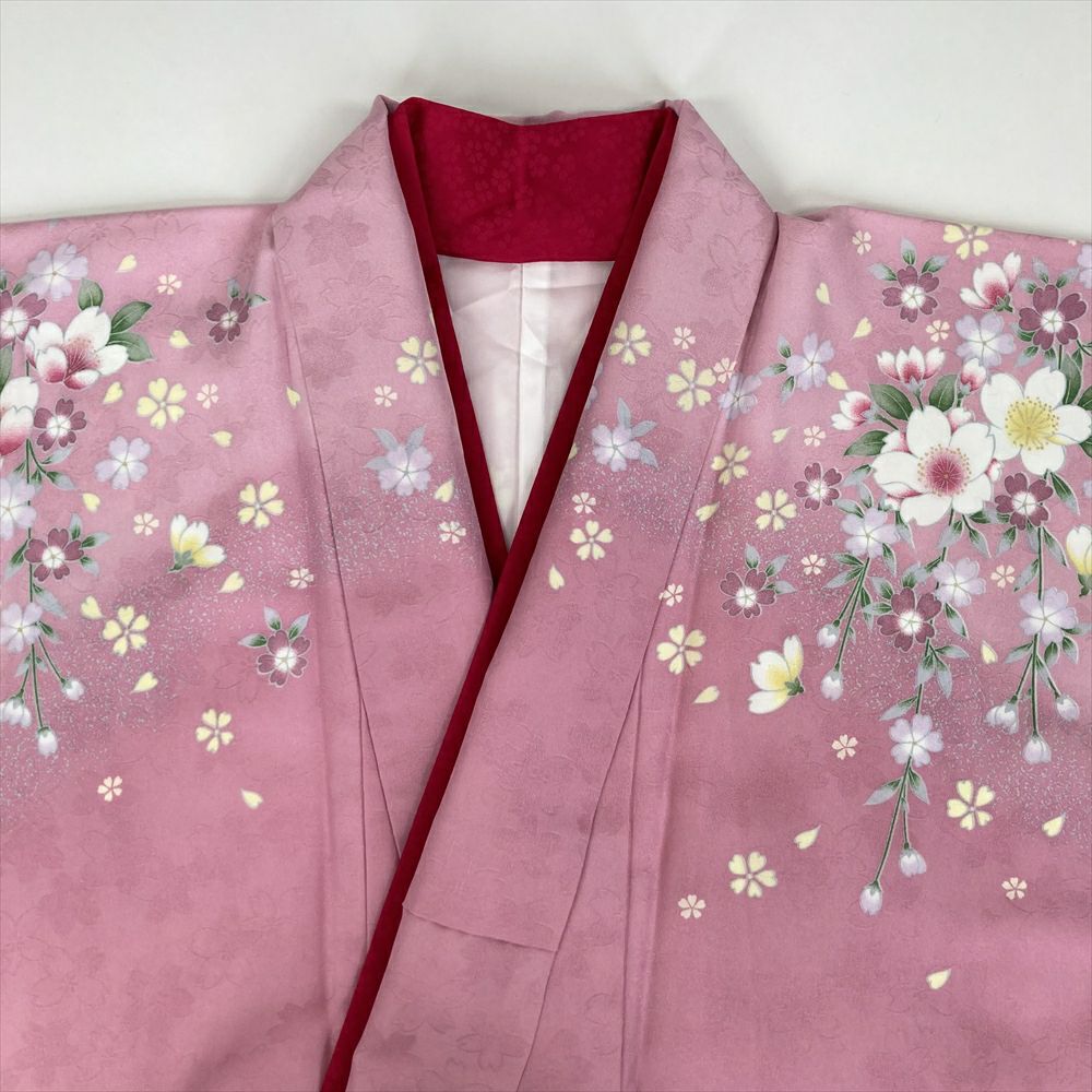 (中古)二尺袖 単品 ミルキーハニー ピンク フォーマル 枝垂れ桜 袷 ポリエステル M L 2L
